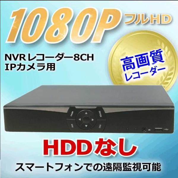 防犯カメラ用 NVR 8CHレコーダー HDDなし フルハイビジョン対応 1080P LAN接続 フルHD 高画質 210万画素 監視カメラ 屋外 屋内 赤外線 夜間撮影