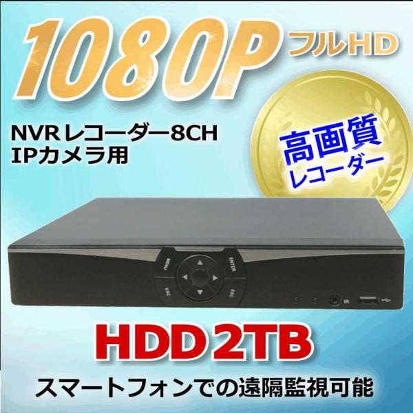 防犯カメラ用 NVR 8CHレコーダー HDD-2TB(3.5インチ)フルハイビジョン対応 1080P LAN接続 フルHD 高画質 210万画素 監視カメラ 屋外 屋内 赤外線 夜間撮影