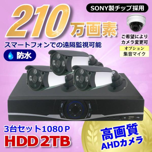 防犯カメラ 210万画素 4CH DVRレコーダーSONYカメラ3台セット HDD2TB AHD 1080P フルHD 高画質 録画屋外 屋内 赤外線 夜間撮影 3.6mmレンズ