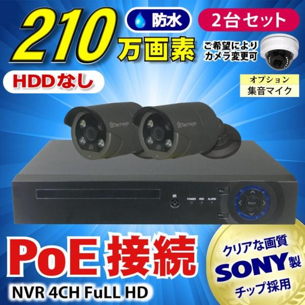 防犯カメラ 210万画素 4CH POEレコーダーSONY製IPカメラ2台セット (LAN接続)HDDなし 1080P フルHD 高画質 監視カメラ 屋外 屋内 赤外線 夜間撮影 3.6mmレンズ