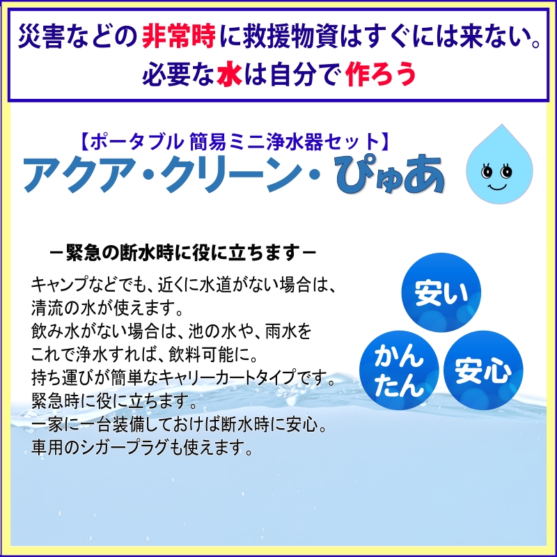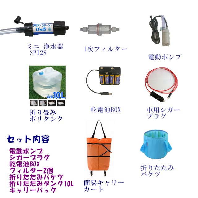 アクア・クリーン・ぴゅあ 電動 ポンプ セット 簡易 浄水器 緊急時 飲料水製造 非常時 キャンプ 防災グッズ ソーヤーミニ SP128 タイプ