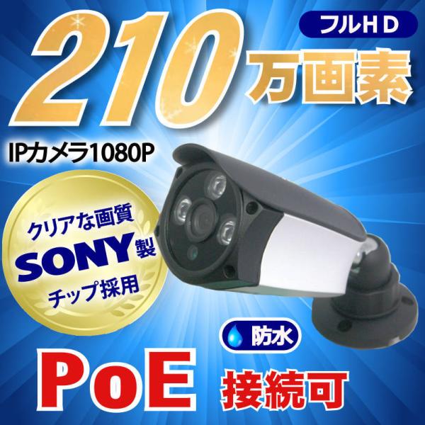 防犯カメラ SONY製 210万画素 PoE IP(LAN接続)1台 1080P フルHD 高画質 監視カメラ 屋外 屋内 赤外線 夜間撮影 3.6mmレンズ