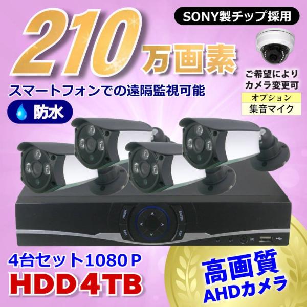 防犯カメラ 210万画素 4CH DVRレコーダーSONYカメラ4台セット HDD4TB AHD 1080P フルHD 高画質 録画屋外 屋内 赤外線 夜間撮影 3.6mmレンズ