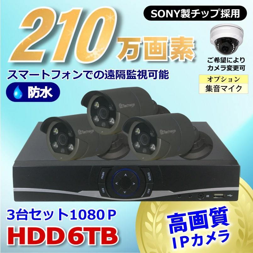 防犯カメラ 210万画素 4CH NVR レコーダー SONY製 IP ネットワーク カメラ 3台セット (LAN接続)HDD 6TB 1080P フルHD 高画質 監視カメラ 屋外 屋内 夜間撮影