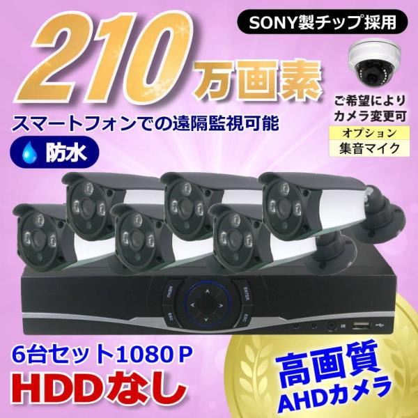 防犯カメラ 210万画素 8CH DVRレコーダーSONYカメラ6台セット HDDなし AHD 1080P フルHD 高画質 録画屋外 屋内 赤外線 夜間撮影 3.6mmレンズ