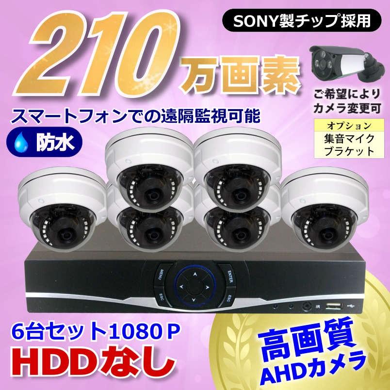 防犯カメラ 210万画素 8CH DVR レコーダー SONY 防水 ドームカメラ 6台 セット HDDなし 音声入力 AHD 1080P フルHD 高画質 録画屋外 屋内 赤外線 夜間撮影