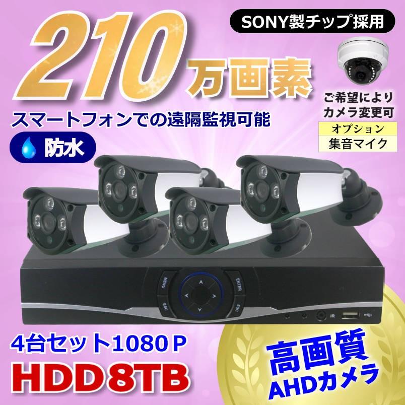 防犯カメラ 210万画素 4CH DVR レコーダー SONY製 カメラ 4台セット HDD 8TB AHD 1080P フルHD 高画質 録画 屋外 屋内 赤外線 夜間撮影 3.6mmレンズ