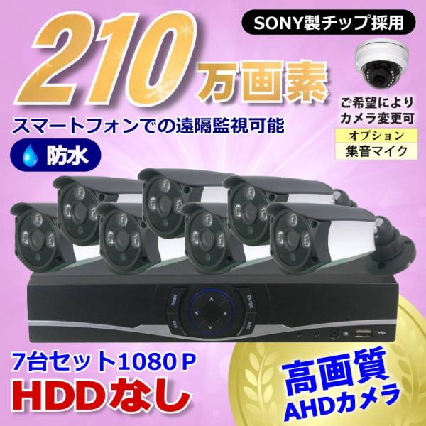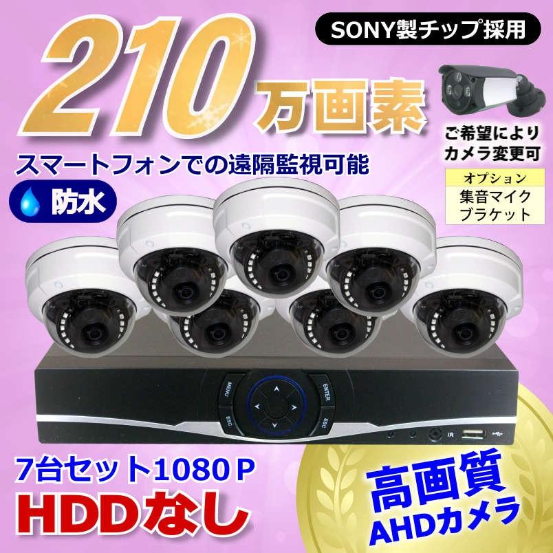 防犯カメラ 210万画素 8CH DVR レコーダー SONY 防水 ドームカメラ 7台 セット HDDなし 音声入力 AHD 1080P フルHD 高画質 録画屋外 屋内 赤外線 夜間撮影