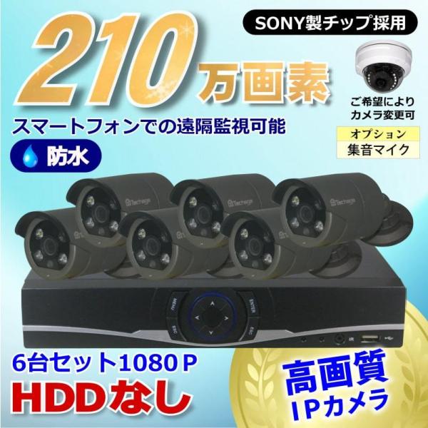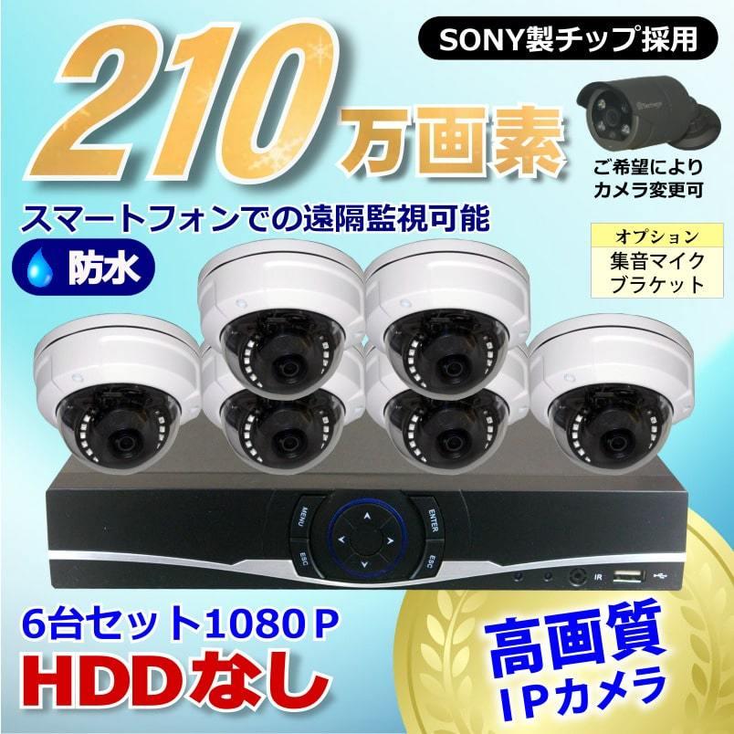 防犯カメラ 210万画素 8CH NVR レコーダー SONY製 防水 ドーム型 IPカメラ 6台 セット 音声入力 LAN接続 HDDなし 1080P 監視カメラ ネットワーク 夜間撮影