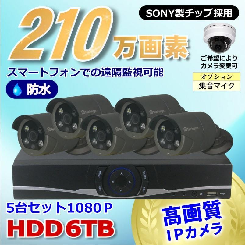 防犯カメラ 210万画素 8CH NVR レコーダー SONY製 IP ネットワーク カメラ 5台セット (LAN接続)HDD 6TB 1080P フルHD 高画質 監視カメラ 屋外 屋内 夜間撮影