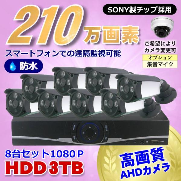 防犯カメラ 210万画素 8CH DVR レコーダー SONY 防水 ドームカメラ 8台 セット HDD 3TB 音声入力 AHD 1080P フルHD 高画質 録画屋外 屋内 赤外線 夜間撮影