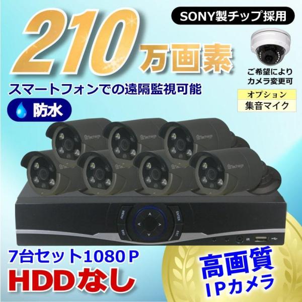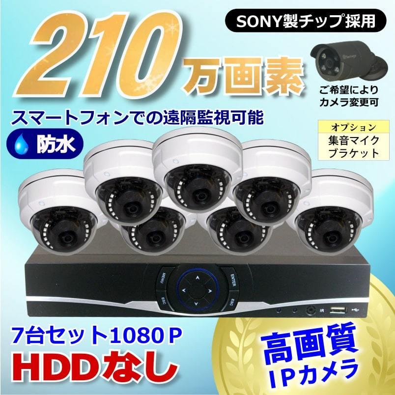 防犯カメラ 210万画素 8CH NVR レコーダー SONY製 防水 ドーム型 IPカメラ 7台 セット 音声入力 LAN接続 HDDなし 1080P 監視カメラ ネットワーク 夜間撮影