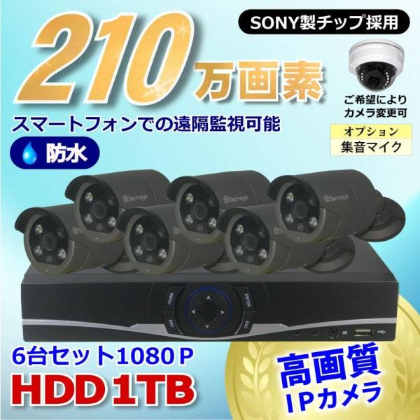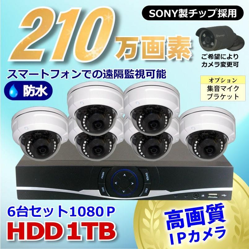 防犯カメラ 210万画素 8CH NVR レコーダー SONY製 防水 ドーム型 IPカメラ 6台 セット 音声入力 LAN接続 HDD1TB 1080P 監視カメラ ネットワーク 夜間撮影