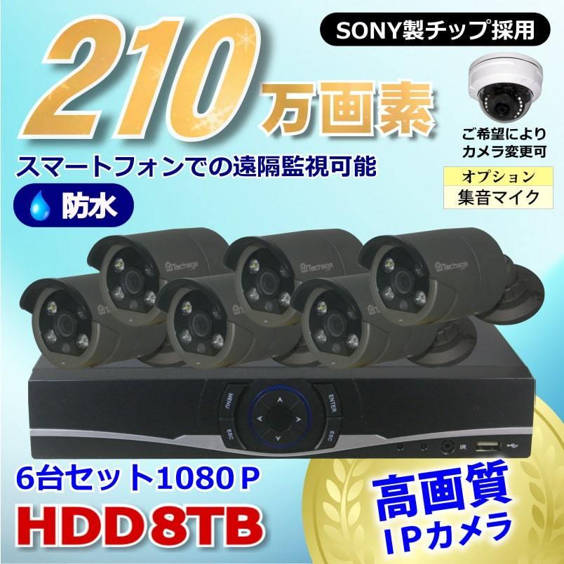 防犯カメラ 210万画素 8CH NVR レコーダー SONY製 IP ネットワーク カメラ 6台セット (LAN接続)HDD 8TB 1080P フルHD 高画質 監視カメラ 屋外 屋内 夜間撮影