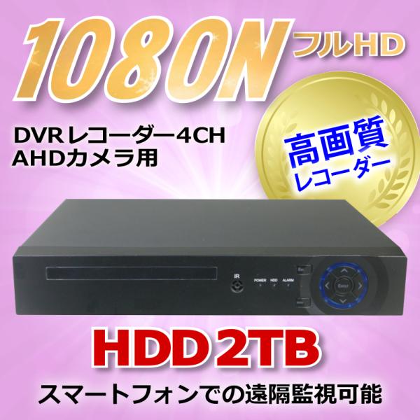 防犯カメラ用 DVR 4CHレコーダー HDD-2TB1080N LAN接続 HD 高画質録画 監視カメラ 屋外 屋内 赤外線 夜間撮影