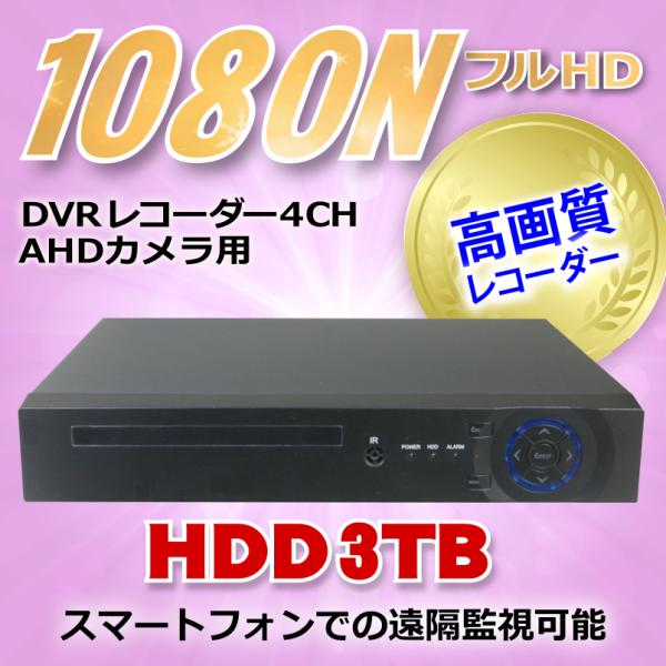 防犯カメラ用 DVR 4CHレコーダー HDD-3TB1080N LAN接続 HD 高画質録画 監視カメラ 屋外 屋内 赤外線 夜間撮影