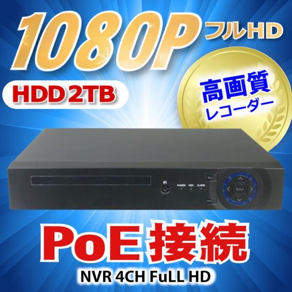 防犯カメラ用 NVR PoE 4CHレコーダー HDD-2TB フルハイビジョン対応 1080P LAN接続 フルHD 高画質 210万画素 監視カメラ 屋外 屋内 赤外線 夜間撮影