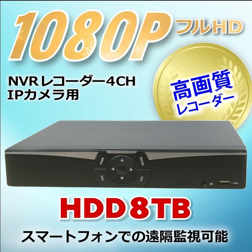 防犯カメラ用 NVR 4CHレコーダー HDD-8TB(3.5インチ)フルハイビジョン対応 1080P LAN接続 フルHD 高画質 210万画素 監視カメラ 屋外 屋内 赤外線 夜間撮影