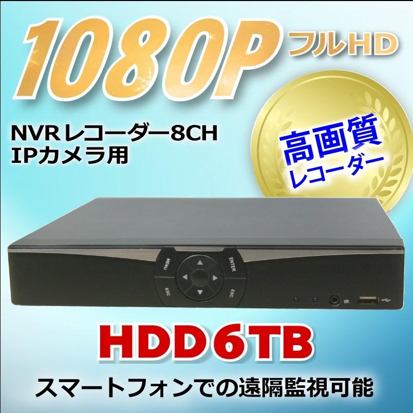 防犯カメラ用 NVR 8CHレコーダー HDD-6TB(3.5インチ)フルハイビジョン対応 1080P LAN接続 フルHD 高画質 210万画素 監視カメラ 屋外 屋内 赤外線 夜間撮影