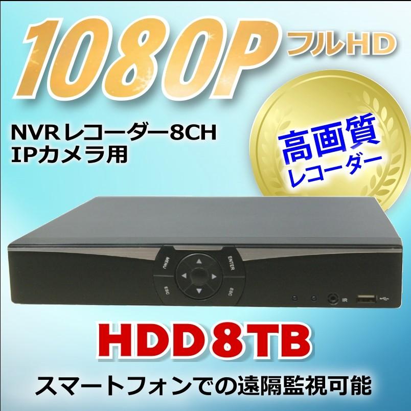 防犯カメラ用 NVR 8CHレコーダー HDD-8TB(3.5インチ)フルハイビジョン対応 1080P LAN接続 フルHD 高画質 210万画素 監視カメラ 屋外 屋内 赤外線 夜間撮影