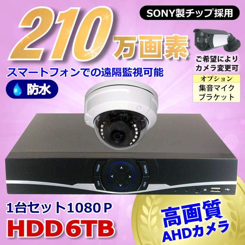 防犯カメラ 210万画素 4CH DVR レコーダー SONY 防水 ドームカメラ 1台 セット HDD 6TB 音声入力 AHD 1080P フルHD 高画質 録画屋外 屋内 赤外線 夜間撮影